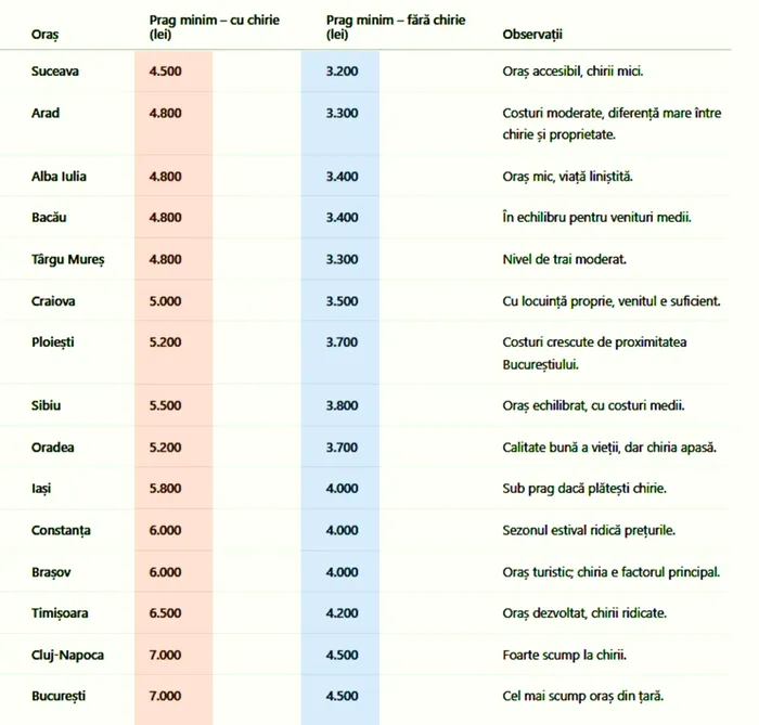 Analiza arată că sărăcia în România nu este determinată exclusiv de nivelul salariilor, ci și de costul vieții din fiecare oraș. În timp ce în unele localități un venit de 4.500 de lei poate asigura un trai minim decent, în marile centre urbane aceeași sumă plasează o persoană sub pragul sărăciei. Diferențele regionale accentuează inegalitățile sociale și subliniază nevoia unor politici publice adaptate realităților locale.